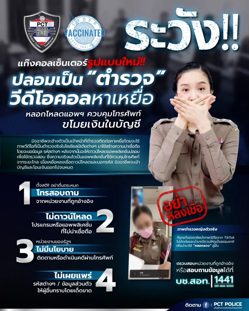 ตร. เตือนภัยมุกใหม่แก๊งคอลเซ็นเตอร์ ปลอมเป็นตำรวจวีดีโอคอลหลอกเหยื่อ
