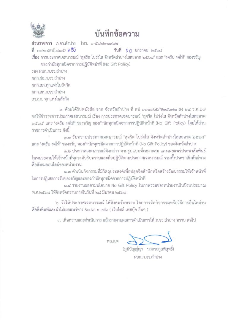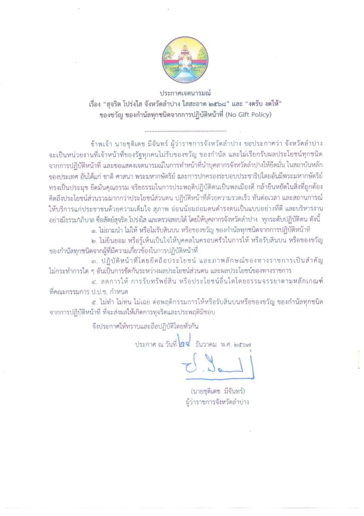 นโยบายไม่รับของขวัญและของกำนัลทุกชนิด (No Gift Policy )