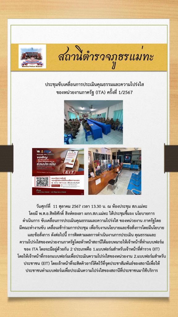 การมีส่วนร่วมของหัวหน้าสถานีประจำเดือนตุลาคม 2567