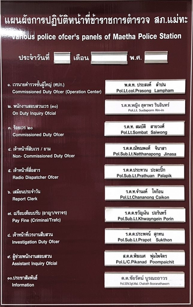1.2ภาพการกำหนดแผ่นป้ายแสดงตารางเวรผู้ปฏิบัติ พร้อมรูปภาพ และเบอร์โทรศัพท์ที่สามารถติดต่อได้