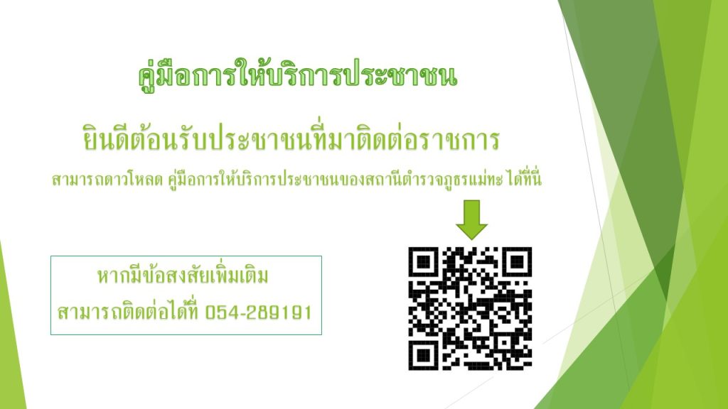 2.1 จัดให้มีเจ้าหน้าที่ประชาสัมพันธ์ ช่องทางเผยแพร่ บทบาท ภารกิจและผลการปฏิบัติงานของสถานีตำรวจ ณ จุดบริการประชาชน