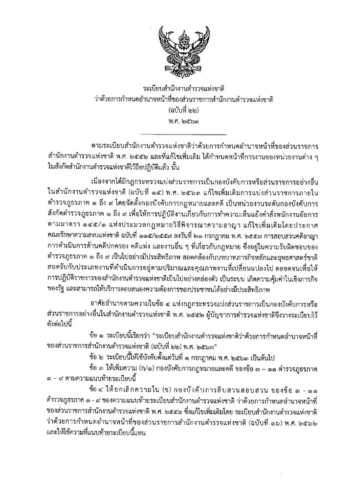 อำนาจหน้าที่ส่วนราชการสำนักงานตำรวจแห่งชาติ