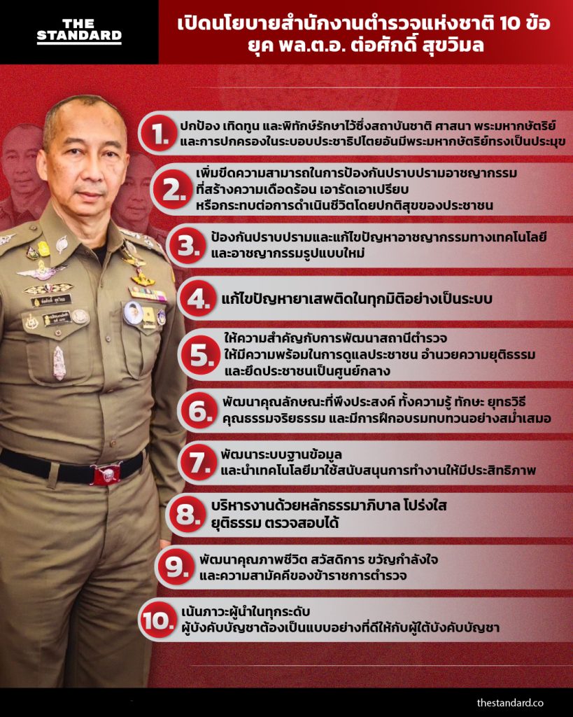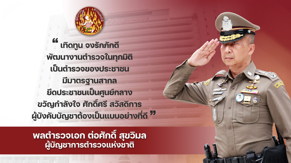 - ให้ความสำคัญกับการพัฒนาสถานีตำรวจให้มีความพร้อมในการดูแลประชาชน อำนวยความยุติธรรม และยึดประชาชนเป็นศูนย์กลาง
